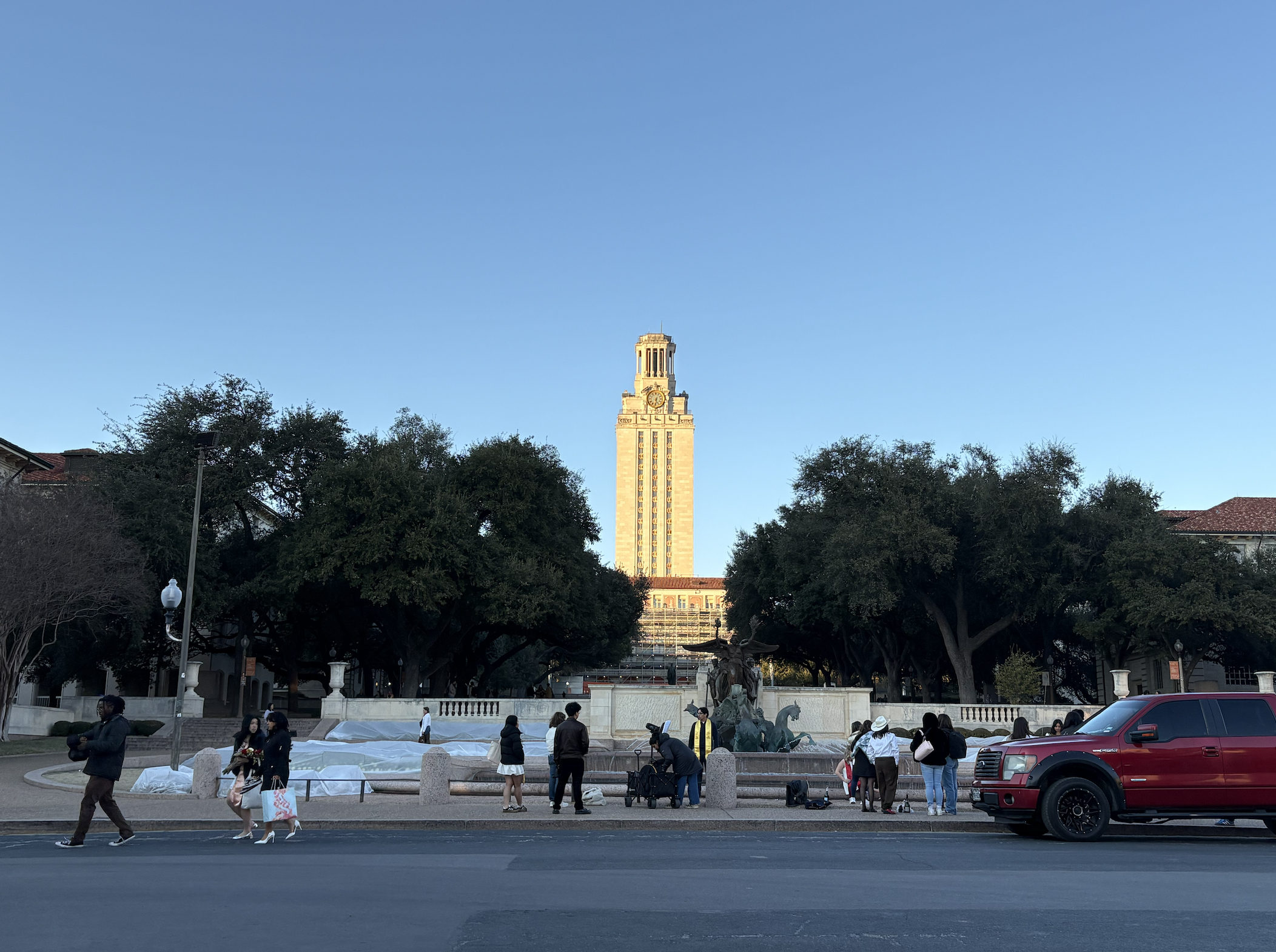 Since late 2024, the ongoing restoration project, “Our Tower: The Next 100 Years,” has affected how students take graduation photos. While exterior restoration efforts have been underway, an email from Vice President for Student Affairs John Dalton noted increased scaffolding beginning this month. According to UT News, the work is expected to last through summer 2027, heavily impacting the classes of 2026 and 2027.